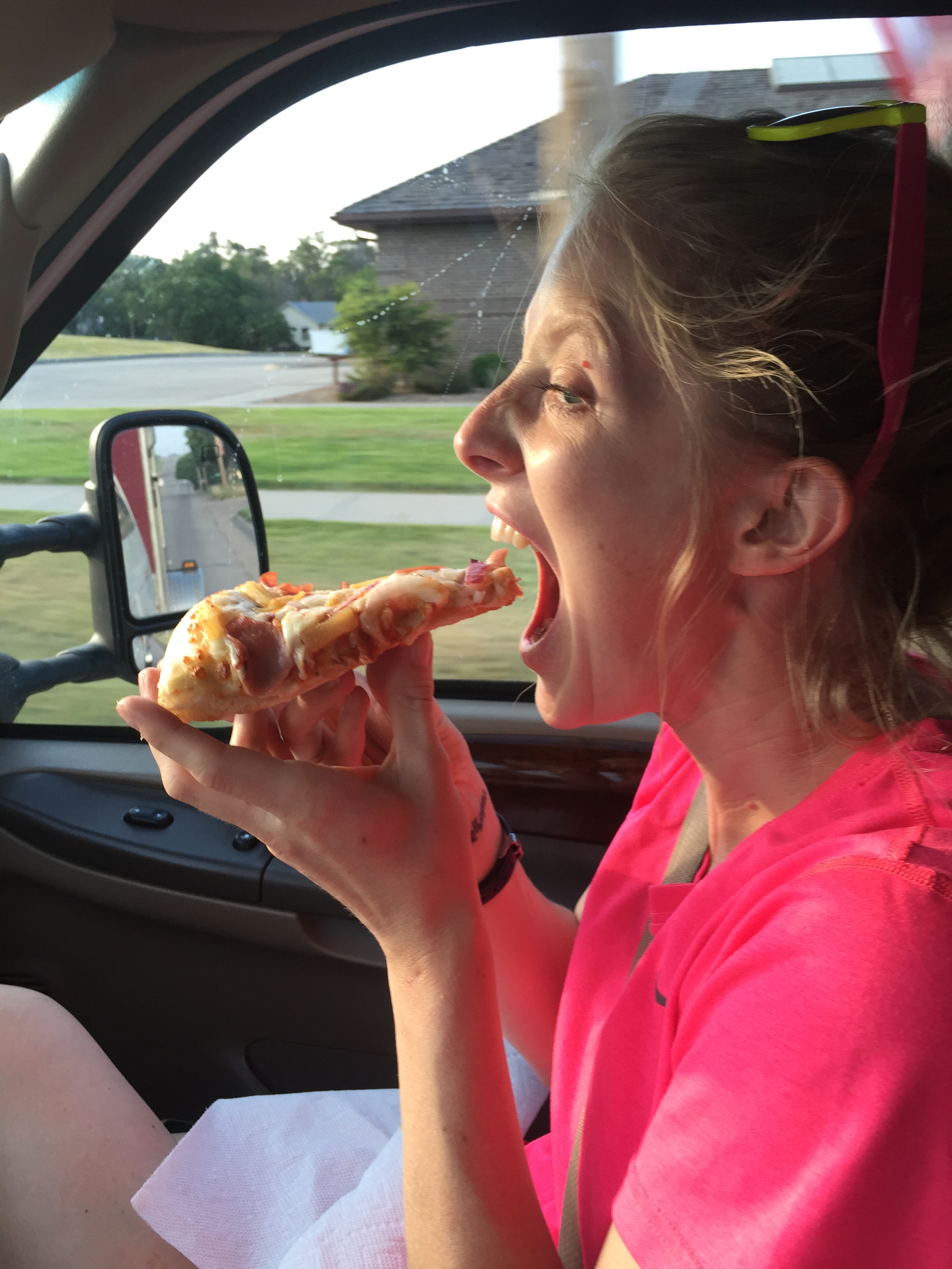 We assumed Poppy would be up at her regular 6:00ish time so we’d hit the road by 8:00, but apparently sleeping in a pitch dark bathroom with rain music [Coach is McGyver on the hotel sleeping arrangements] will allow her to sleep past 8??? So… Slightly late start. Breakfast at Burger King. E doesn’t like french toast sticks and made that face she makes when she is disappointed in her parents choices. Coach was also sad – BK is not the right way.