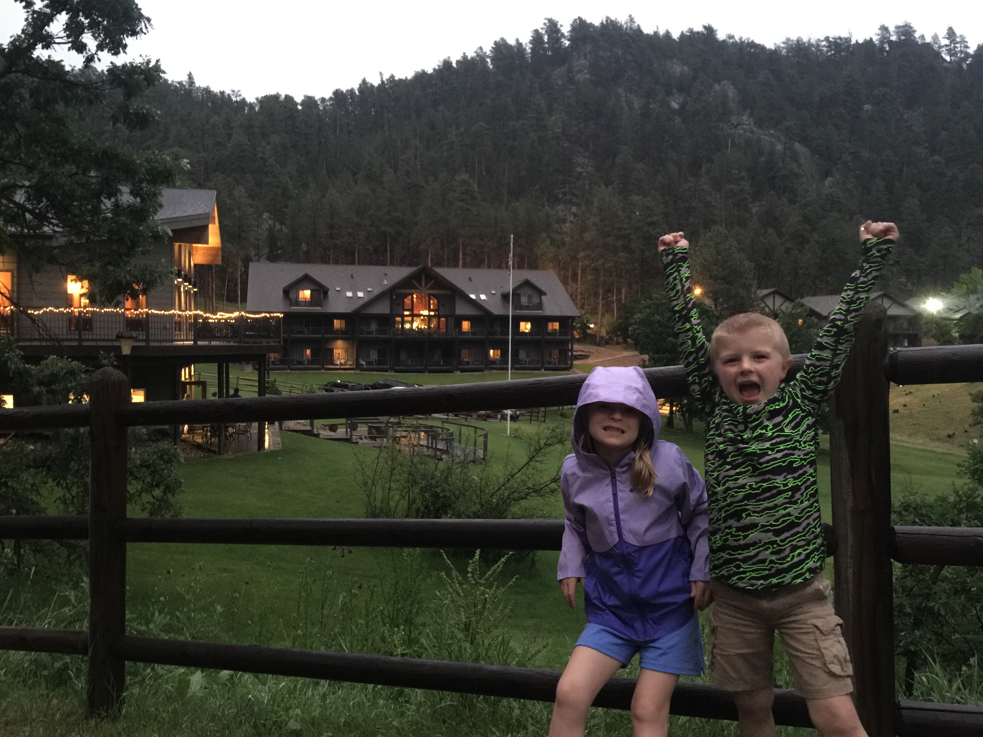 The family is now officially tired and its laundry night. We’re about to make our big arrival at the K Bar S Lodge in Keystone, SD. Beautiful place – up in the Black Hills, big lodges for the rooms. We would highly recommend staying here. Coach works his bed magic again and creates a makeshift bed for Poppy in the hanging closet of the room. She zonks out hard. Lady Coach being the diligent lady she is starts to do laundry down the hall from the room and being the crazy disciplined woman she is – does a full P90X workout in the hot and tiny laundry room. To Coach’s credit, he did not think Lady Coach was quite as crazy as the folks who walked in on here doing the workout. Coach, being the hero, takes 2 big kids for hike and hot chocolate. The train that runs through Keystone and through the Black Hills runs through the resort and the kiddos loved it.